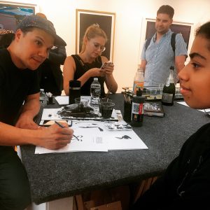 Jade (the teen who was with me) is a great artist so I especially loved that she was able to meet and get a painting of herself from “Addams Family Artist” Ricardo Roig (Roig Collection). In addition to his Hoboken studio location, he also has a studio in Westfield that showcases his hand-cut paper stencil screenprints.