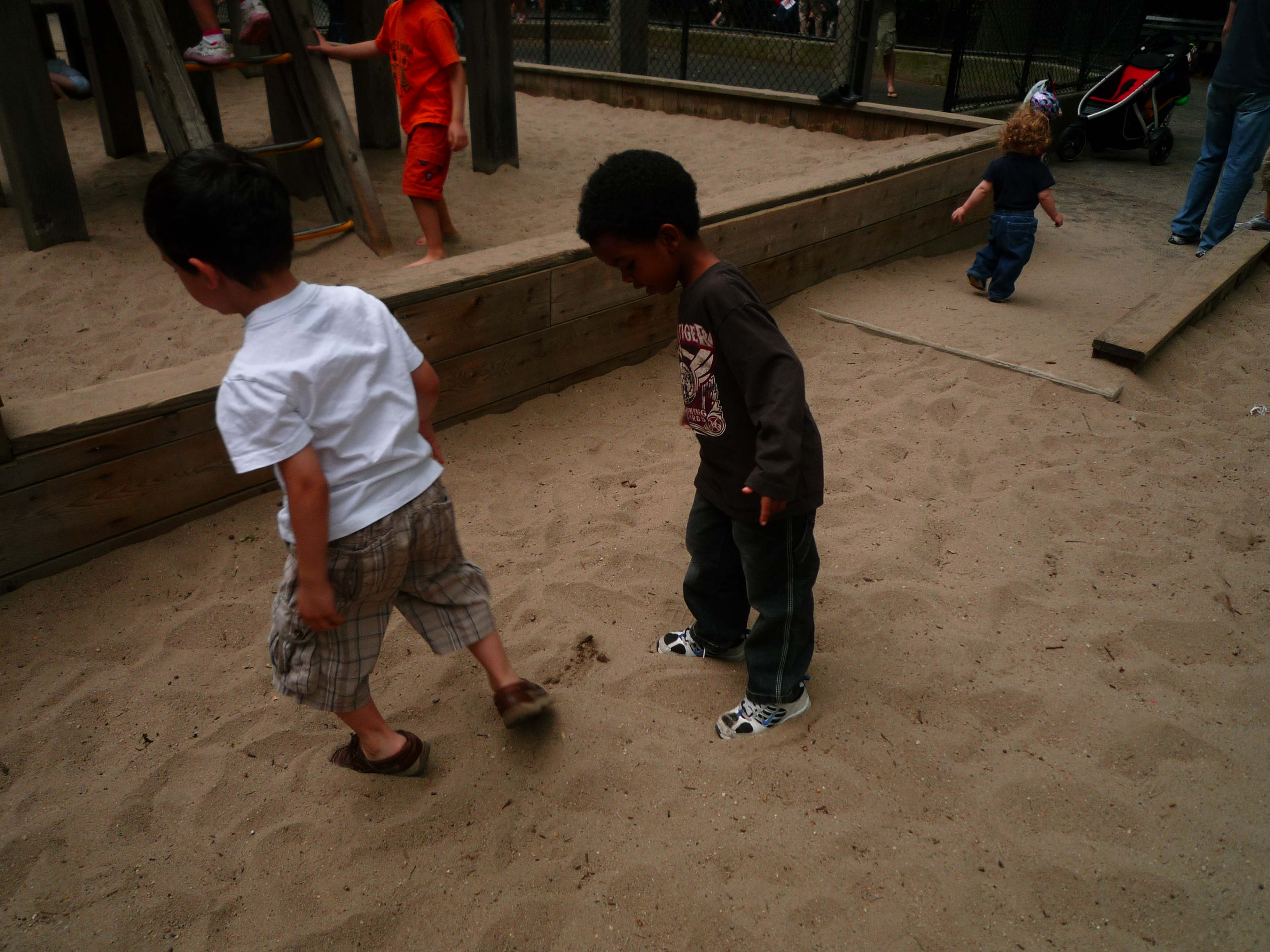 The four of us met up and we all had a lovely time. Michael and David saw each other down the sidewalk and started running towards one another. Once they met up, I wondered if they would hug. They didn’t. Being the big “5 year old boys”, they stopped immediately before running into each other and asked, “What’s up?” (It was so cute!) After a quick change of plans (since UP was sold out!), we all had lunch and then went to the park together. Unfortunately, it started to rain about 15 – 20 minutes into the park time. I was able to get a few shots of the boys before the rain fell though….