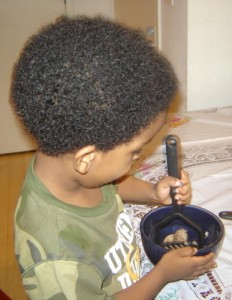 I realized that it had been a while since I had baked with Michael, so I decided that we would bake something together on the week-end. I bought some ingredients to make banana bread, since we had some ripe bananas at home and on Saturday we baked. It really is a great way to spend bonding time with my son and also to teach him various skills (i.e. math and science) in a fun way. Michael is a fun “little chef”…that’s what he calls himself because of Disney’s Ratatouille.