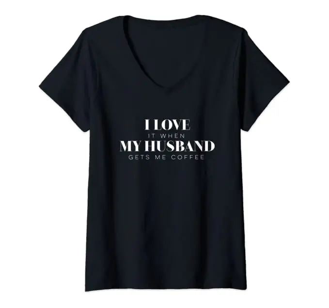 -I did a gender flip for the I Love It When My Husband Gets Me Coffee shirt. The only coffee that I drink is Starbucks caramel frappes on occasion BUT I do love it when my husband Reggie brings me one. 😊