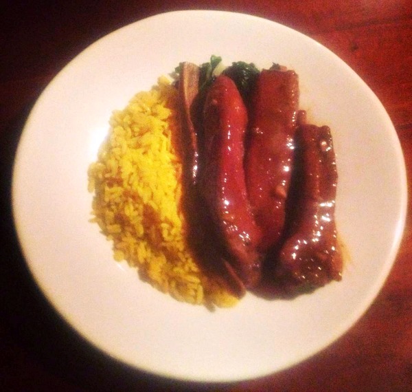That’s it! I served our ribs with yellow rice on a bed of spinach and my husband and both sons happily ate everything!