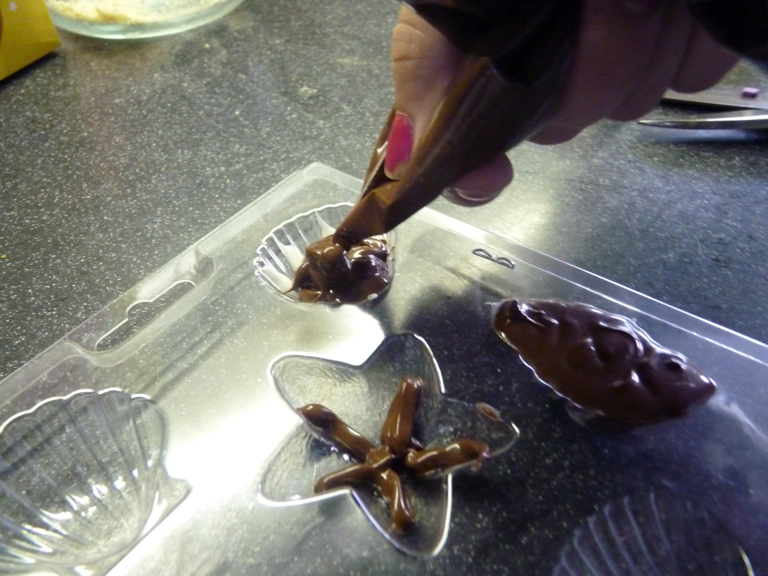 Once all the molds are filled, place the molds into the fridge for at least 30 minutes. After the 30 minutes have passed, remove the molds from the fridge, turn the candy mold upside down over a plate and very gently twist and bend the mold. The shell candy pieces will simply pop out onto the plate.
