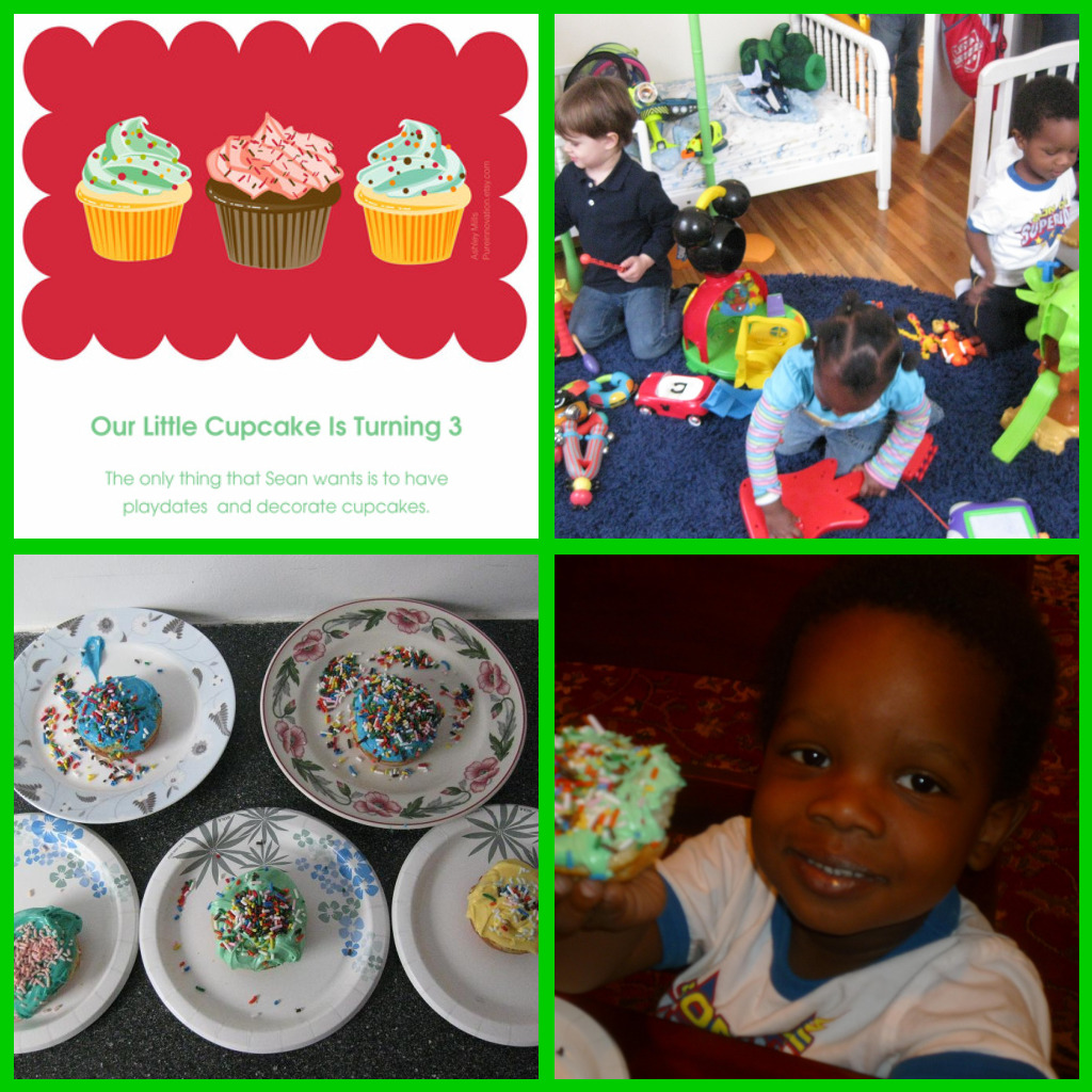 2. He has a mind of his own. Unless his personality goes through a drastic change, I don’t think that we will have to worry about Sean blindly following the crowd. He knows what he wants and what he doesn’t want and is very clear and quick to say “No” when someone is pressuring him to do something that he does not want him to do. Although that can sometimes be frustrating for me as a parent (i.e. as I anticipate potty training wars!), for the most part I love it. For instance, when we were trying to plan his birthday celebration, he was very clear about what he did and did not want. He did not want a big party. He wanted three gifts; a playdate with his little friends and he wanted to decorate cupcakes with them. He also wanted to have a little family dinner with his grandparents. That’s it. So that is exactly what he received. (You know what? It was one of the easiest, fun birthday celebrations ever.)