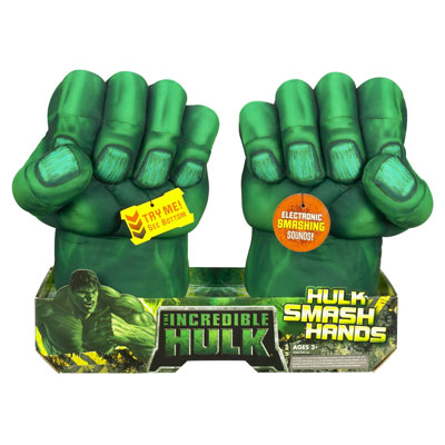 -It’s okay that my husband (usually) has a more sober estimate of how things will work out than I do. For instance, I’m working on my holiday toy guide. In my mind, I was under the delusion that I would let my sons test some of the samples and then give them away or put them away until Christmas. My husband was like, “Yeah, right. You know that you’re the soft touch.” Well yesterday, I received the Hulk Smash hands. Even before I finished opening the box, Michael was jumping up and down yelling “Hulk Smash!” while Sean kept saying “Wow”. They both then proceeded to try to “Hulk Smash”/attack me with the hands. Very cute! There’s no way that I’m getting that toy back…