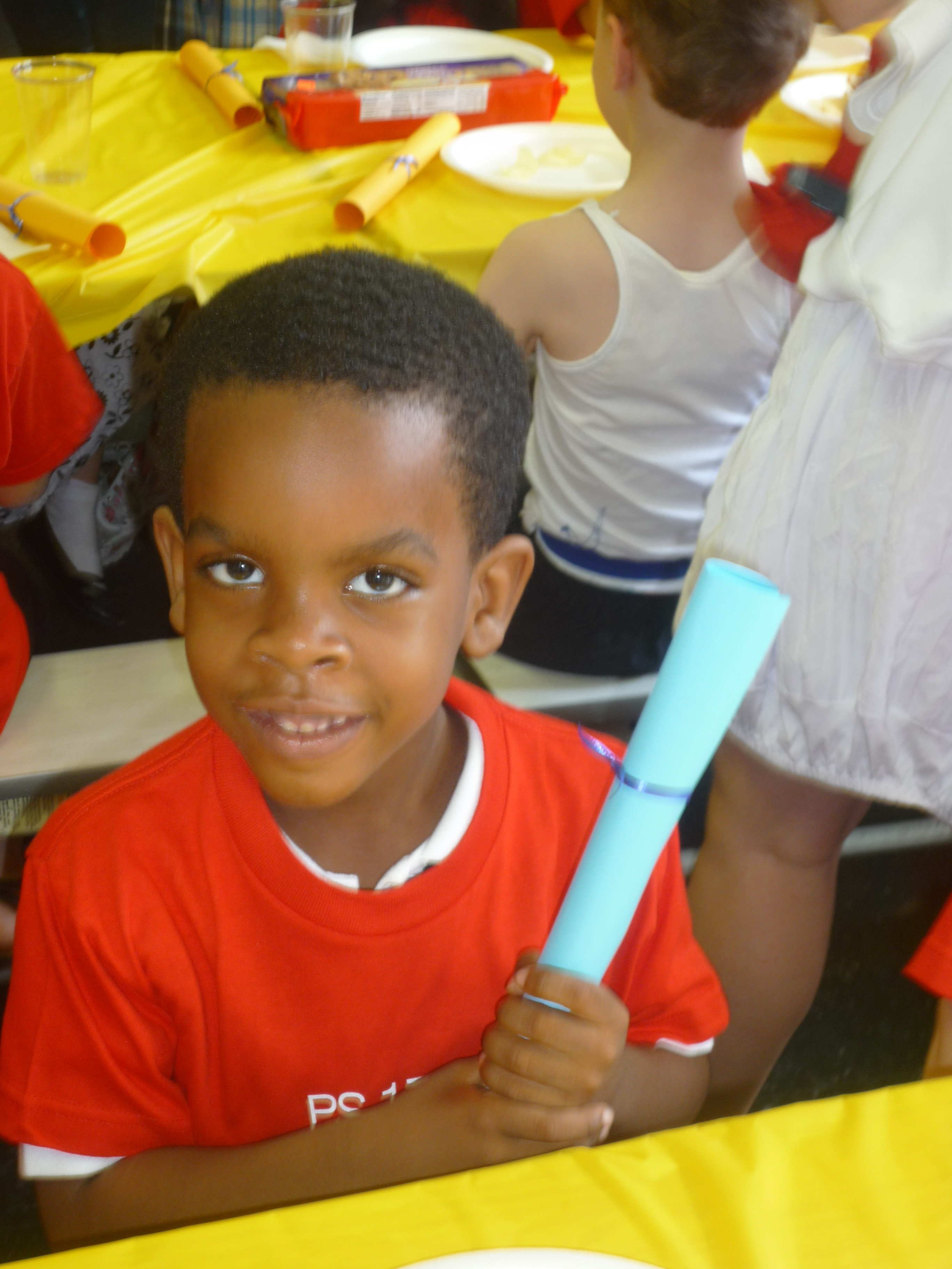 I was so happy and proud of Michael. Each Kindergarten class had one flag bearer and he was the one for his class. Since the flag bearers went up on stage last, I was standing up to take his picture. I thought that Michael was waving at me, but it turns out that he was motioning for me to sit down so that he could say his one individual line. His line was “Assembly, please stand up.” (That’s why he needed me to be seated…oops!) Then, all of the Kindergarten students sang seven songs together. During the last song, “We’re Growing Up”, I became a little sentimental as they sang out “…and soon we’ll be as big as you!” It’s true that they grow up so quickly. Michael’s arms and legs have sprouted so much in the past year that he no longer fits comfortably in his bed. One thing that he will be getting this summer is a new, larger bed! (And didn’t I just go to pre-k graduation the day before yesterday?!)
