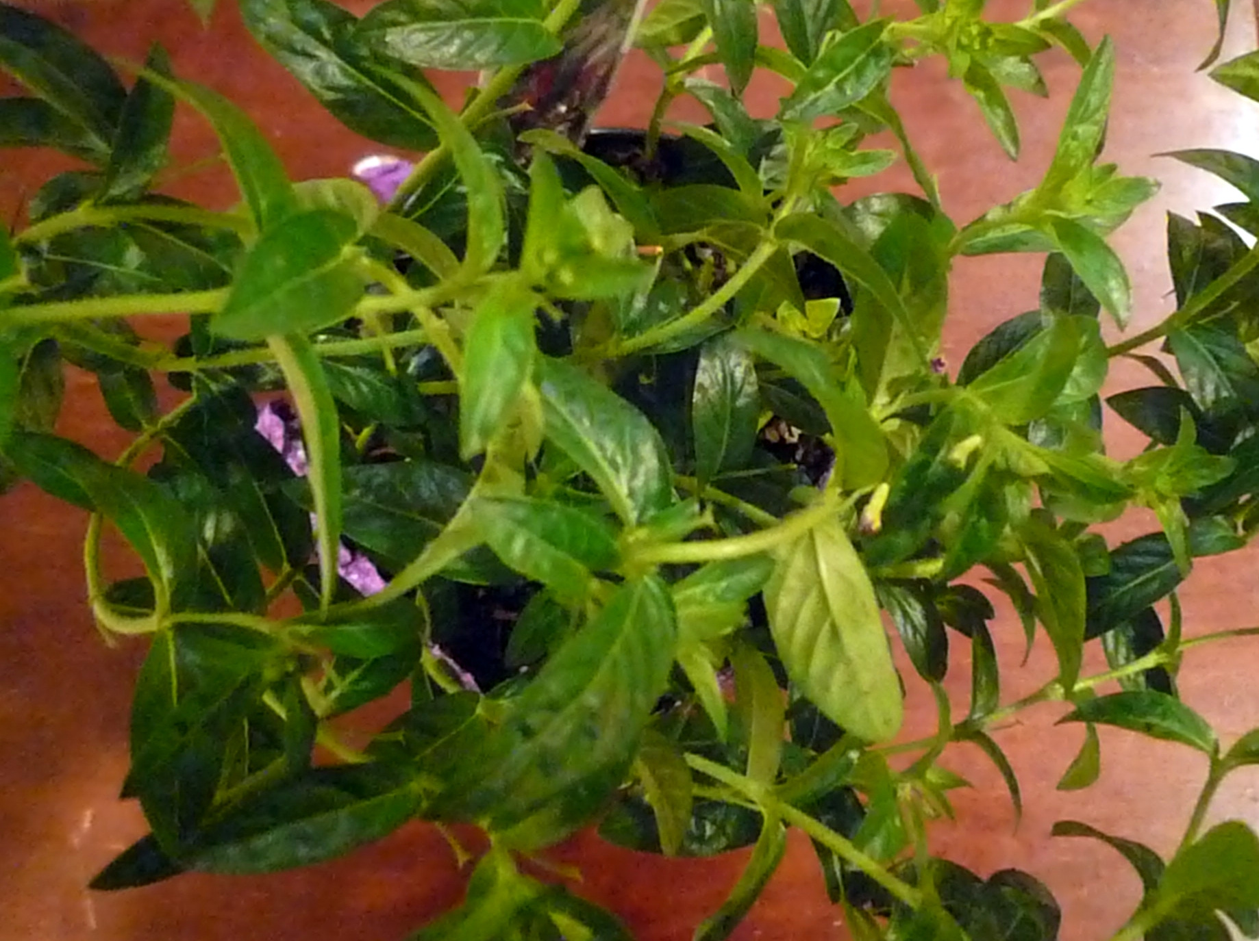 Later, I learned that my husband had not given Michael any money for the flower. We owe someone money. Oh, well. In any event, I love my little gift, because it came from Michael’s heart. Now I just hope that I don’t kill the Allyson Heather/Cuphea hyssopifolia before the little purple flowers bloom! (I have an awful track record with live plants and flowers…)