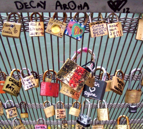 Since it was raining, we decided not to take a Seine River cruise. However, we walked along it and over it. My mom and I were wondering what was the meaning of all of the locks that were on the chain link fence on the Passerelle des Arts bridge that we crossed to get to the Louvre museum. Of course I had to research it…and it turns out to be such a sweet sentiment. According to Paris Cherie, they are lover’s padlocks. “After locking the love padlock onto the fence, the lovers tossed the keys into the Seine river – a sign of their eternal love.” How sweet!
