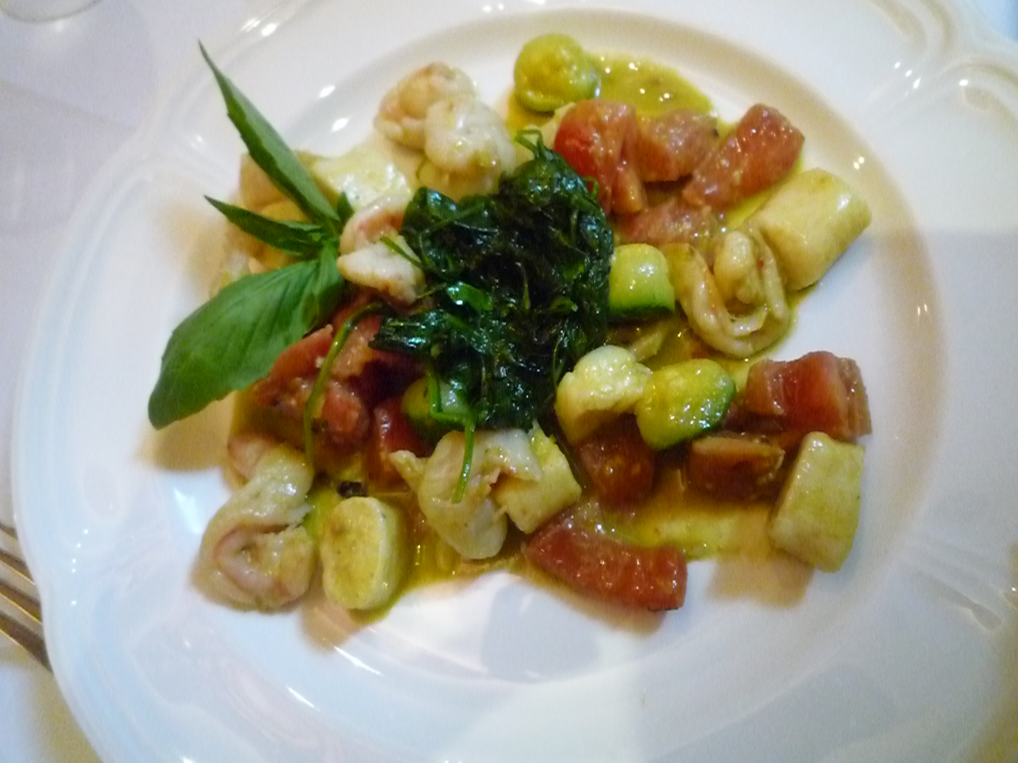 The sauteed wild Pacific shrimp with President Fat-Free Feta was the entree dish. The dish also included zucchini and roasted plum tomatoes. Everything was in a delicious fresh basil sauce. You can find the shrimp and gnocchi recipe below.