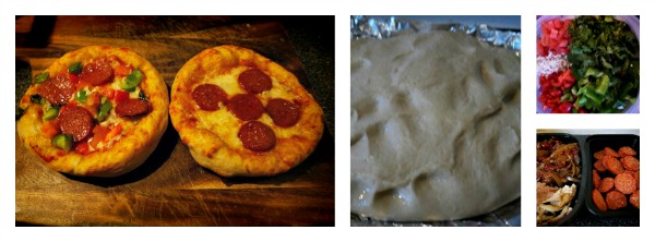 After “Mexican Meal” Tuesdays, my family added Friday “Pizza Nights” to the meal schedule for a while. The great thing about living in NYC is that there are some of the best local pizza shops. While you can make your own pizza dough, another option is to get it from your local pizzeria. We have an amazing restaurant, Primadonna Ristorante E Pizzeria, across the street from us in Queens. They have some of the best pizza crust that I have ever tasted. (They actually employ one worker whose sole job is to make the pizza crust dough all day.) Since I have neither the time nor the desire to be making pizza dough all day, I just buy the dough (at less than $5) for the pizzas that my family makes at home. All you have to do is cut the dough in four sections. Pat each section into a circle and then stretch the dough out to your desired shape. (Rolling pins are not even necessary if you are using dough purchased from your local pizzeria! Below are the simple directions: