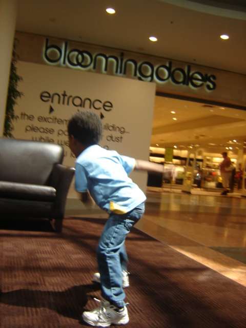 We set aside Saturday to go out to Long Island’s Roosevelt Field Mall in order to try to buy everything in one day. After two clothing store visits and one shoe store visit, we took a break for lunch. The shopping was fun for the most part. Michael really only cared about the backpack – Spiderman all the way. We almost had a meltdown while getting shoes at Stride Rite. Michael wanted to get these ugly (in my opinion) green and black Nickelodeon Slimers sneakers. No way. When he saw that wasn’t a possibility, he asked for the Nickelodeon Slimers Splatstomper Rain Boot. Normally, I wouldn’t pay $35 (why are they only $28 online?) for “ugly” rain boots BUT Stride Rite was having a “buy one, get one 1/2 price” sale, so I relented. (What can I say? I didn’t want to ruin his first school shopping experience.)