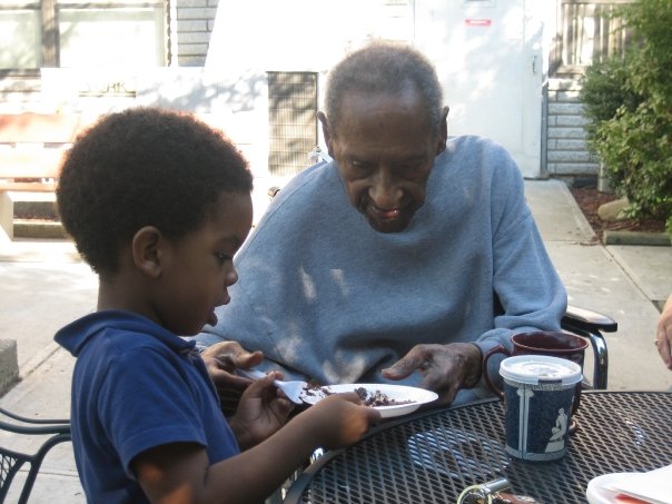 Wordless Wednesday: Youth (4 Years) & Old Age (98 Years) September 15, 2008September 10, 2008 by Kimberly Idalio (98) cutting up a piece of his chocolate birthday cake for Michael (4) (To see other “Wordless Wednesdays” around the web, visit here or here.)